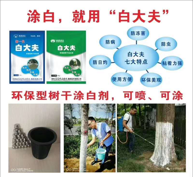 三、涂層薄。與傳統(tǒng)石灰水相比,新型涂白產(chǎn)品白大夫涂刷層更薄,超強(qiáng)的吸附能力使得施工中更容易涂刷。與普通“涂白”相比,在相同的人力與用料情況下,涂刷的樹木總數(shù)更多。