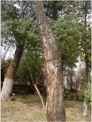 3.主干:主干受凍后形成縱裂,一般稱為“凍裂”,樹皮成塊狀脫離木質(zhì)部。
