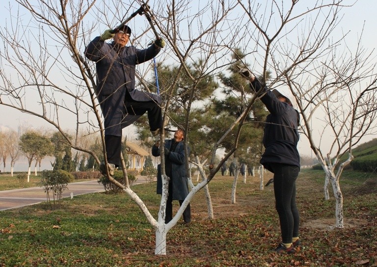 三是培根。通過中耕培土提高根際周圍土壤溫度,在花木行間、株間進行淺中耕,對根部進行培土。喬木、半喬木、培土高度為4-6厘米,綠籬、灌木、藤本植物花木培土高度為2-4厘米。