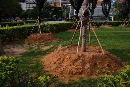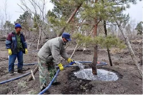 凍水灌完后結(jié)合封堰,在樹木根頸部培起直徑80至100厘米,高40至50厘米的土堆,防止低溫凍傷根頸和樹根。