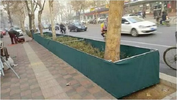 為減輕寒冷干燥的大風(fēng)吹襲,造成樹木凍旱的傷害,在樹木的上風(fēng)方向,以杉木、竹竿等材料做支撐,綠色無紡布或尼龍布等材料遮擋,以做成風(fēng)障。風(fēng)障要高于樹高;支撐要牢固;漏風(fēng)處要及時縫合。