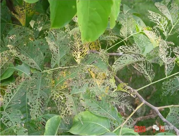 樹上噴藥:可選擇萊恩坪安瑞青(葉蟲凈)、萊恩坪安坪泰(狂殺)或阿維菌素、甲維鹽等,在傍晚5~6點(diǎn)進(jìn)行噴施。
