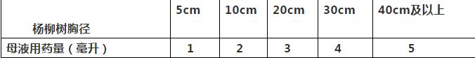 本品必須在楊柳樹飄絮結束后25-60天內使用,用于抑制第二年的楊柳樹飄絮問題。在母液瓶子中按1:9進行稀釋,即在母液的瓶子中直接兌水加滿。然后將母液瓶中的液體裝入插瓶中,插瓶裝滿即可,在樹體鉆孔后,將插瓶插入樹體。
