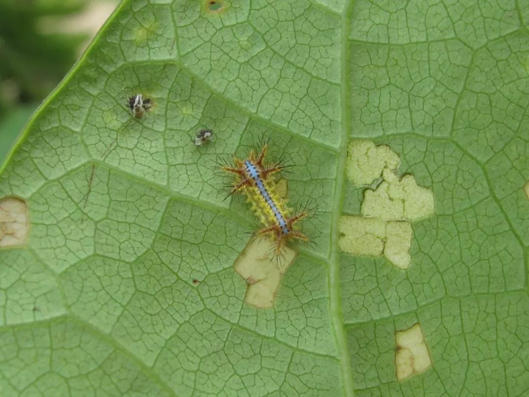 3、幼蟲群集為害時(shí),摘除蟲葉,人工捕殺幼蟲,捕殺時(shí)注意幼蟲毒毛。