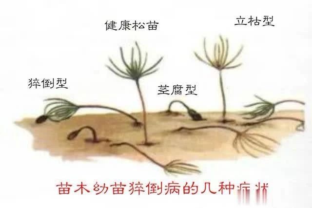 幼苗在不同發(fā)病時(shí)期,表現(xiàn)出不同癥狀。發(fā)生在播種后至出土前這段時(shí)期,種芽在出土前被病菌侵染,破壞種芽組織,引起腐爛,造成缺苗,稱為種芽腐爛;發(fā)生在幼苗出土期,剛出土的幼苗被病菌侵染,稱為莖葉腐爛;發(fā)生在幼苗出土至苗莖木質(zhì)化時(shí)期,此時(shí)苗莖幼嫩,尚未木質(zhì)化,病菌自根頸處侵入,產(chǎn)生褐色斑點(diǎn),漸擴(kuò)大成水漬狀病斑,病菌在幼苗根莖組織內(nèi)蔓延,使組織壞死,幼苗迅速倒伏,引起典型的幼苗猝倒癥狀;發(fā)生在苗木根頸部木質(zhì)化后。病菌從根部侵人,使根皮腐爛,病苗直立枯死,但不倒伏,引起典型的立枯癥狀。