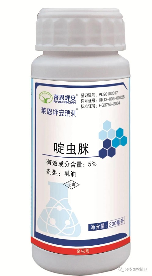 2.化學防治 華北地區(qū)5月中下旬是防治代若蟲關鍵時期,因為這代較為整齊。因此,要加強蟲情調查,若蟲發(fā)生期噴施萊恩坪安瑞青800倍液,或萊恩坪安瑞刺800倍液防治;害蟲發(fā)生盛期可選用萊恩坪安瑞卡+瑞青兌水200公斤噴霧防治,效果好,持效期長。