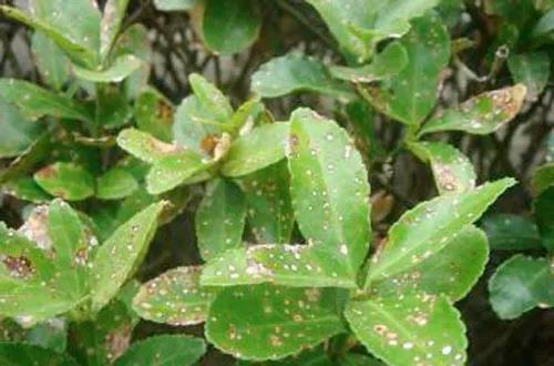 寄主:各種喬木、花灌木。葉斑病常引起植株提前落葉,造成禿枝,甚至死亡,嚴(yán)重影響植物的正常生長和觀賞效果。發(fā)病初期,葉上有黃色小斑點(diǎn),漸變?yōu)辄S褐色,后擴(kuò)大為圓形或不規(guī)則形病斑,灰褐色或灰白色,邊緣色深,病斑上著生許多小黑點(diǎn),嚴(yán)重時(shí)病斑連成一片,葉片枯黃脫落。一般6月份開始侵染,7、8月份為侵染盛期,在8月中旬出現(xiàn)癥狀,8月中下旬至9月份發(fā)病嚴(yán)重,病斑擴(kuò)大,出現(xiàn)落葉。發(fā)病的輕重與氣溫及降雨的多少有直接關(guān)系,一般高溫多雨霉?jié)竦哪攴莅l(fā)病嚴(yán)重。