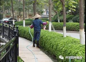 及時(shí)清除草坪及各種樹(shù)木下的雜草,綠籬及色塊內(nèi)生出的雜生植物、爬藤等應(yīng)及時(shí)予以連根清除,防止草荒。