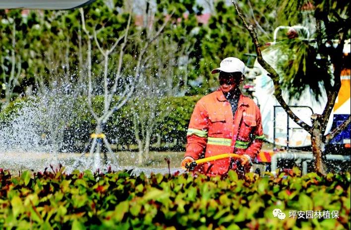 樹(shù)木、灌木、花卉、草坪、綠籬及各種色塊進(jìn)入生長(zhǎng)旺盛期,各種植物的需水量很大,應(yīng)適時(shí)澆水滿足苗木的生長(zhǎng)要求,并及時(shí)松土保墑。特別是新移栽的苗木,必要時(shí)需掛吊袋液補(bǔ)充水分和養(yǎng)分。草皮、地被類苗子用噴灌比較好,澆水的時(shí)候要均勻,這就要求苗圃地平坦。澆水時(shí)間最好是在清晨或者是傍晚,避開(kāi)高溫時(shí)段。