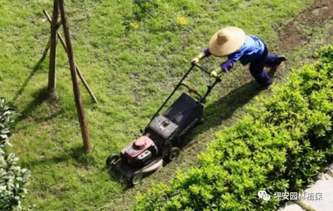 ⑤草坪修剪,基本上10-15天一次,高度保持在5-9公分左右。修剪時(shí)注意不要有明顯的漏剪痕跡,剪下的草屑及時(shí)清運(yùn),不得堆積在草坪里。