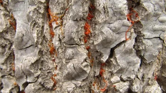 楊樹(shù)潰瘍病主要危害樹(shù)干,初期在皮孔邊緣形成水泡狀潰瘍斑,圓形,極小。隨后小泡變大鼓起,大小不等,泡內(nèi)充滿褐色液體,破裂后液體流出,遇空氣變?yōu)殍F銹色。繼而病斑干縮下陷,中間有一縱裂縫。重病樹(shù)病斑連成一體,布滿整個(gè)樹(shù)干,樹(shù)皮變得非常粗糙,植株最終枯死。4月初開(kāi)始發(fā)病,5月至6 月和9月至10月為發(fā)病高峰期。