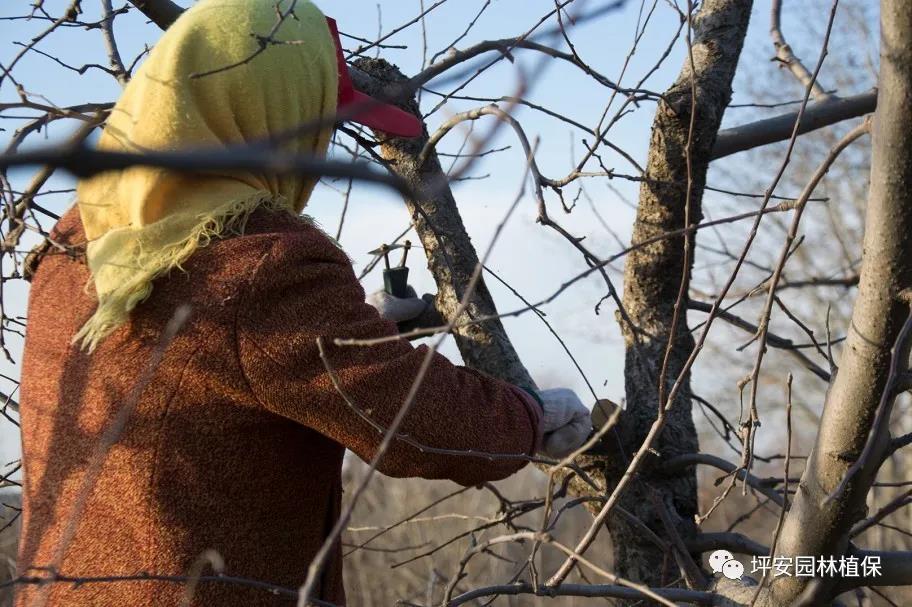 冬季修剪時,要徹底剪除病蟲枝、枯枝、僵果。特別是介殼蟲、蚜蟲、瘤蛾、蚱蟬產卵枝、透枝蛾等多種蟲類和輪紋病、黑痘病、腐爛病、干枯病、流膠病等枝干病害的為害的枝干要進行清理和剪除,并集中燒毀,對減輕其發(fā)生有很好的作用。同時,合理修剪,可調節(jié)樹體負荷,改善通風透光條件,促進樹木健壯生長,可顯著提高樹木的抗病蟲能力。