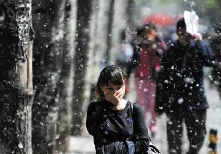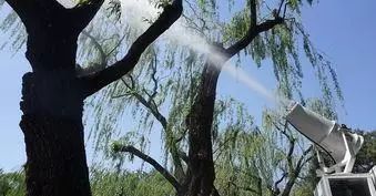 “噴”即對(duì)飛絮嚴(yán)重的楊柳樹可用高壓噴槍噴水的方法,每3至5天噴水一次,減少飛絮總量。