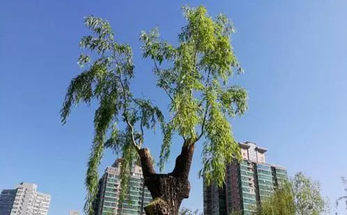“換”即高接換頭,雌株變雄株。柳樹通過(guò)高位去冠,采用雄株金絲垂柳進(jìn)行嫁接,不僅將原雌株變成雄株,減少了飛絮,還將普通柳樹換成了枝條金黃色的金絲垂柳,美化了環(huán)境。