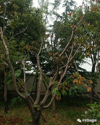 日灼常常引起葉片焦枯,樹干開裂,營養(yǎng)水分傳導(dǎo)受阻。并引起病蟲害的侵染,并使有害代謝物質(zhì)在樹木體內(nèi)積累,造成樹木出現(xiàn)枯死、褐變、幼嫩枝葉或小植株枯死等。