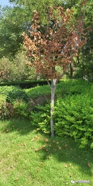 高溫干旱對園林植物有極大危害,同一棵樹,當(dāng)季新梢最易遭高溫的危害。當(dāng)氣候干燥、土壤水分不足時,因根系吸收的水分不能彌補蒸騰的損耗,容易出現(xiàn)以下狀況。