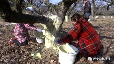 秋冬和早春時進(jìn)行清園的時候,為了避免果樹發(fā)生低溫凍害、日灼等問題,同時也為了滅殺病蟲害,我們可以把石硫合劑與生石灰、食鹽、植物油、清水按照0.5:5:0.5:1:20的比例配制成石硫合劑涂白劑,然后涂抹在果樹的枝干上,這層涂白劑就能起到預(yù)防凍害、日灼和病蟲害的作用。