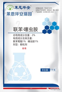 3.食葉類害蟲:尺蠖、美國白蛾的第一代幼蟲等食葉類害蟲。推薦使用萊恩坪安瑞廣、萊恩坪安瑞威或萊恩坪安岐功進(jìn)行防治。若害蟲已產(chǎn)生抗性,可將上述產(chǎn)品復(fù)配或增加藥劑使用量來確保效果。