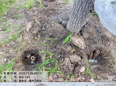 對于比較衰弱的行道樹,可以用大樹營養(yǎng)快線、活寶等對樹干進(jìn)行輸液處理,同時(shí)增施烏龍珠、萊恩坪安沃園等肥料,在行道樹的樹坑四角埋上透氣棒,改良土壤的同時(shí),增加土壤的透氣性,也更利于水肥往下滲透供樹體吸收。