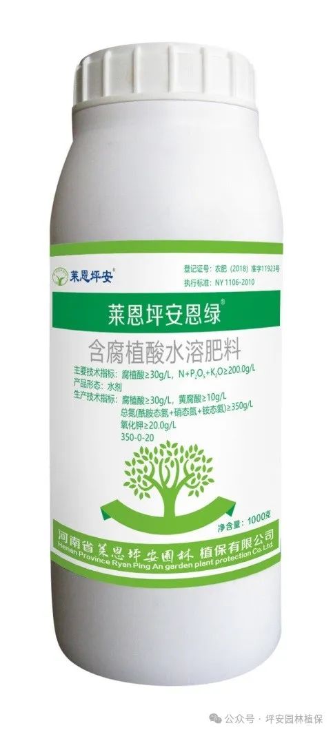 含腐殖酸水溶肥,由腐殖酸和大量營養(yǎng)元素氮磷鉀科學(xué)配比,腐殖酸≥30g/L,黃腐酸≥10g/L,氮含量≥350g/L,非常適合草坪返青期使用,可促進(jìn)草坪草快速生長,快速返青。且添加了活性因子,活化土壤中的各種營養(yǎng)元素供植物吸收,肥料利用率高。使用方便,省工省時。
