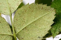 危害特征:主要以若螨、成蟲在葉背刺吸汁液,被害葉片葉綠素受到破壞,出現(xiàn)鐵銹色,葉片呈“干糊狀”,手觸摸易脆。初期葉片失綠,葉緣向上卷翻,以致焦枯、脫落,造成花蕾早期萎縮,嚴(yán)重時植株死亡。除直接使植物出現(xiàn)褪綠、黃點、褐斑、落葉等癥狀外,還可傳播各種病原體,引起其他病毒病。