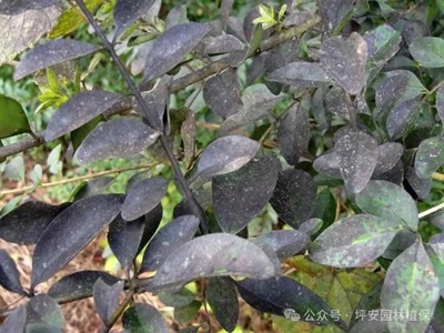 發(fā)病癥狀:發(fā)病初期會在葉面、枝梢表面上形成圓形黑色小霉斑,后期整個葉面以及枝梢都會布滿黑色霉層或黑色粉層。