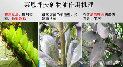 (2)無抗藥性:礦物油殺蟲時(shí)主要是通過封閉害蟲的呼吸系統(tǒng),造成害蟲無法呼吸,使害蟲窒息死亡,害蟲無法對(duì)其產(chǎn)生任何抗性,也會(huì)在植物體表面形成油膜阻止害蟲的幼、若蟲在其上著落,并且還能直接殺死蟲卵,延長(zhǎng)持效期;殺菌時(shí)則主要通過破壞病菌的細(xì)胞壁,干擾其呼吸,并可干擾病原體對(duì)寄主植物的附著或直接通過油膜封閉直接滅殺。因此病蟲害都不會(huì)對(duì)礦物油產(chǎn)生抗藥性。
