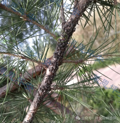 松大蚜屬半翅目蚜科刺吸害蟲,松大蚜廣泛分布于北京、遼寧、河北、河南、山東、陜西、山西、內(nèi)蒙古、江蘇、浙江及江西等地,主要危害黑松、油松、雪松、樟子松、馬尾松等針葉植物。