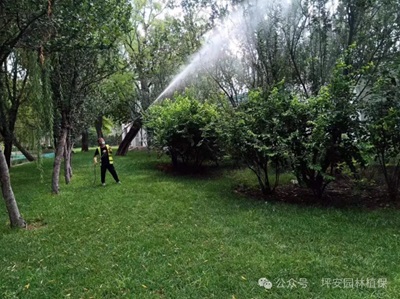 針對像欒樹、樟樹等高大的喬木,存在背負式噴霧器作業(yè)困難,機動式噴霧器在道路或小區(qū)綠化養(yǎng)護中,人流密集作業(yè)影響較大等問題,我們可以采取灌根、樹體輸液等方式進行防治。