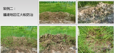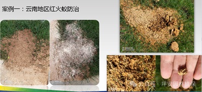 防治紅火蟻時(shí),找到紅火蟻巢穴后將藥粉直接撒于巢穴表面即可,根據(jù)蟻穴大小可酌情增減用量。
